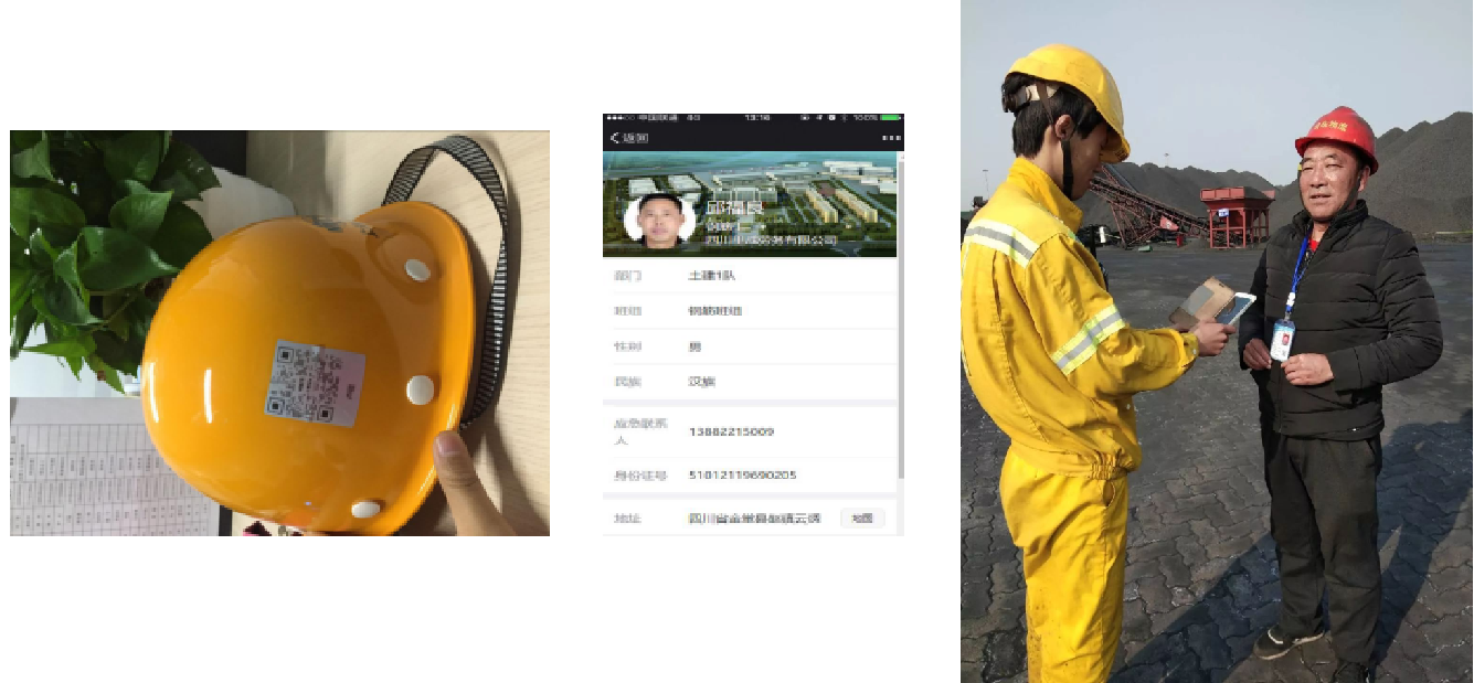 为了加强对现场劳务人员的管理,使管理更加方便更加移动化,可以给现场每个劳务人员定制属于自己的二维码信息。该二维码信息包括姓名、年龄、照片、工种、健康情况、技术能力级别等。该二维码可以安置在工人安全帽上,当工人进场的时候通过二维码扫描仪(类似车站安全扫描机)的时候,扫描仪会自动识别工人信息,同时统计工人数量,来确保现场劳务人员充足,不影响现场工期。另外在现场施工过程中,管理人员也可以通过工人安全帽上的二维码更好的进行人员管理,比如特殊工种人员扫码上岗等,如下图所示。