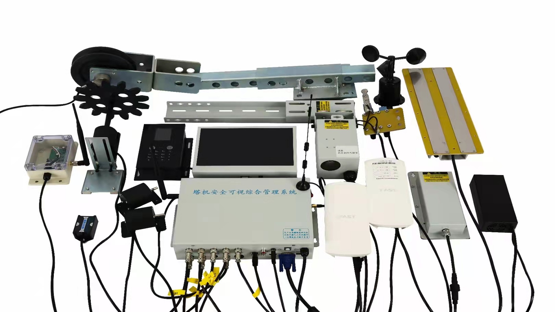 2.确保已完全安装塔式起重机安全保护装置。常用的是举升高度限制器,振幅限制器,举升重量限制器和举升重量限制器。